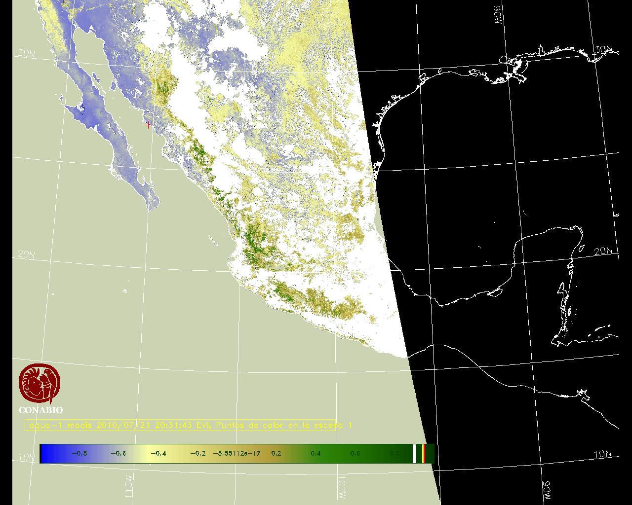 Se considera como punto de calor al elemento espacial mínimo de la imagen (pixel) que reporta una temperatura elevada. Para las imágenes diurnas la temperatura mínima considera es de 42 C y para las imágenes nocturnas es de 25 C. |