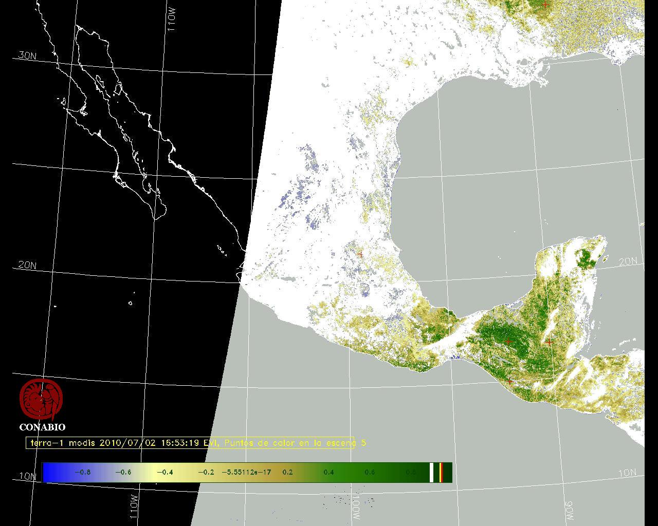Se considera como punto de calor al elemento espacial mínimo de la imagen (pixel) que reporta una temperatura elevada. Para las imágenes diurnas la temperatura mínima considera es de 42 C y para las imágenes nocturnas es de 25 C. |