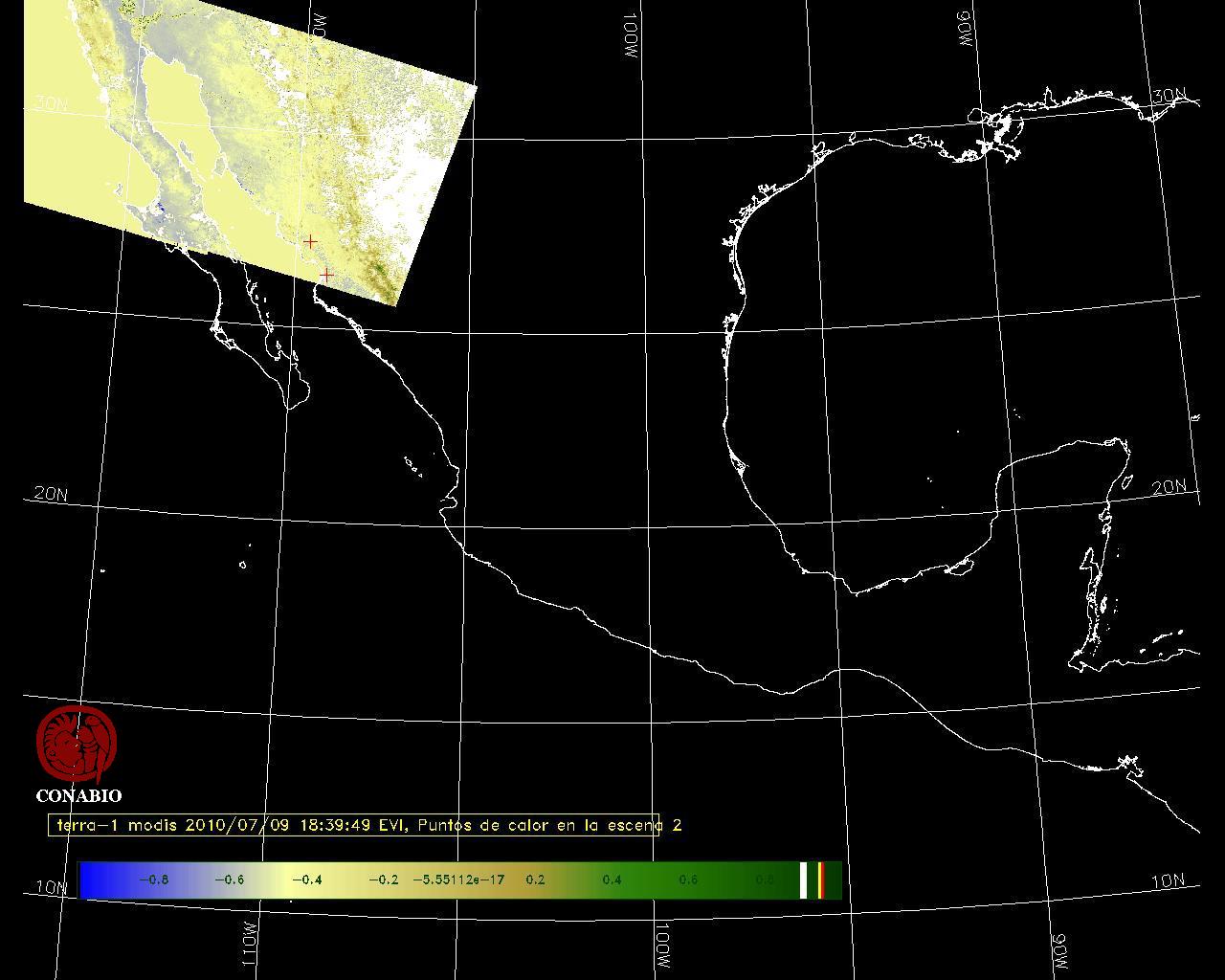 Se considera como punto de calor al elemento espacial mínimo de la imagen (pixel) que reporta una temperatura elevada. Para las imágenes diurnas la temperatura mínima considera es de 42 C y para las imágenes nocturnas es de 25 C. |
