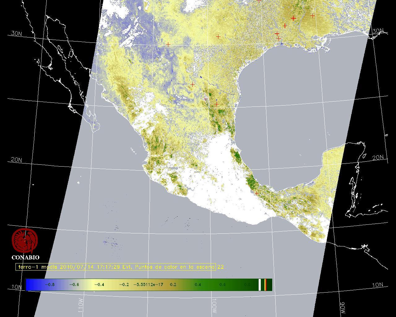 Nubosidad en el terreno:20% Nubosidad sobre México:27% Datos nulos en la escena:28% Datos nulos sobre México:15% |