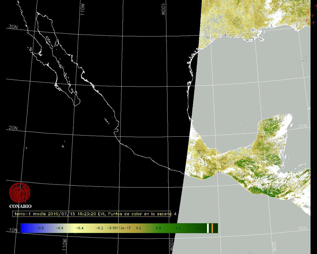 Se considera como punto de calor al elemento espacial mínimo de la imagen (pixel) que reporta una temperatura elevada. Para las imágenes diurnas la temperatura mínima considera es de 42 C y para las imágenes nocturnas es de 25 C. |