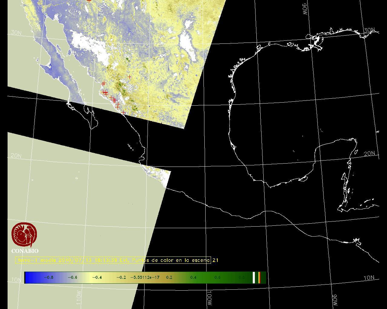 Se considera como punto de calor al elemento espacial mínimo de la imagen (pixel) que reporta una temperatura elevada. Para las imágenes diurnas la temperatura mínima considera es de 42 C y para las imágenes nocturnas es de 25 C. |