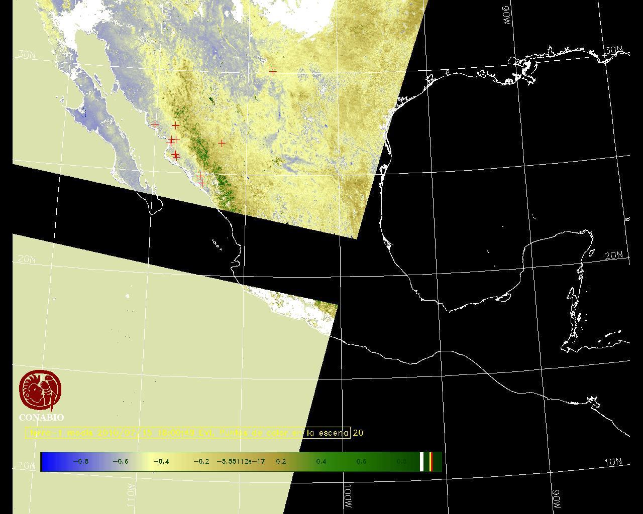 Los valores del índice van de -1 a 1, entre más cercano al valor 1 la vegetación presenta mayor vigor. Los índices de vegetación son utilizados para conocer el comportamiento de la vegetación tanto espacial como temporal. |