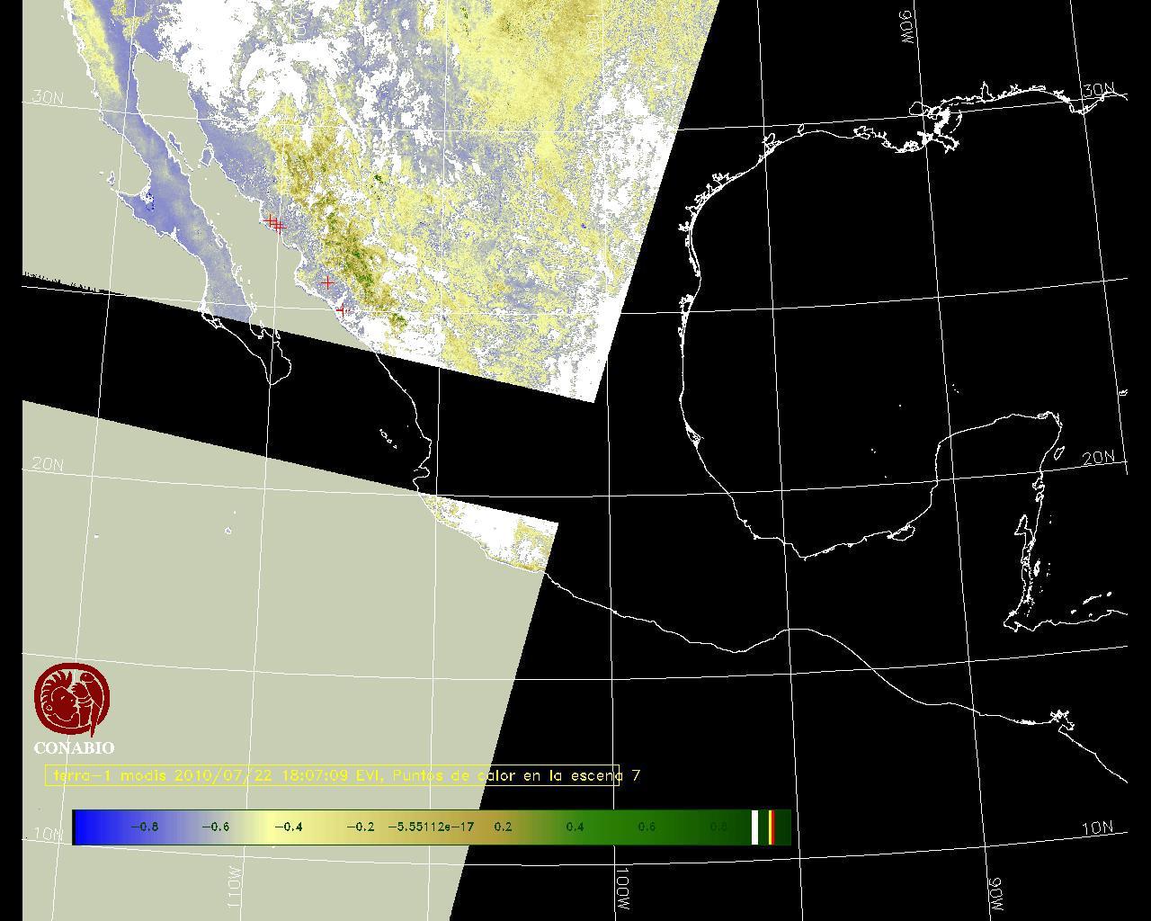 Se considera como punto de calor al elemento espacial mínimo de la imagen (pixel) que reporta una temperatura elevada. Para las imágenes diurnas la temperatura mínima considera es de 42 C y para las imágenes nocturnas es de 25 C. |