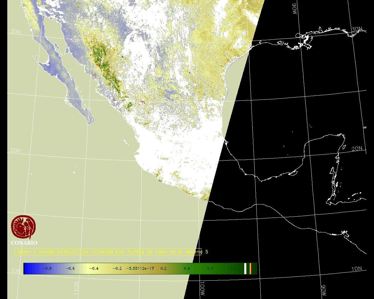 Nubosidad en el terreno:40% Nubosidad sobre México:46% Datos nulos en la escena:40% Datos nulos sobre México:22% |