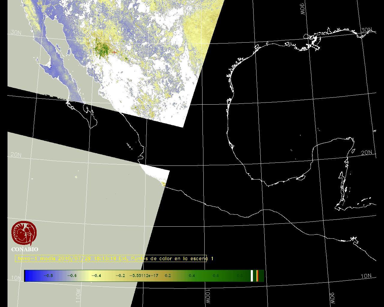 Se considera como punto de calor al elemento espacial mínimo de la imagen (pixel) que reporta una temperatura elevada. Para las imágenes diurnas la temperatura mínima considera es de 42 C y para las imágenes nocturnas es de 25 C. |