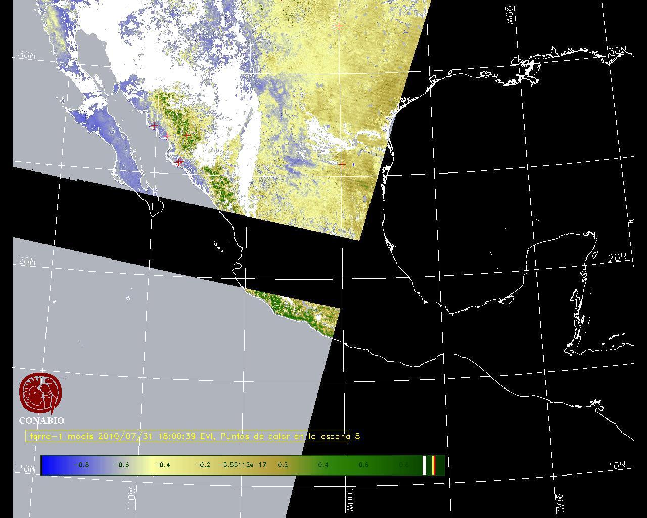 Se considera como punto de calor al elemento espacial mínimo de la imagen (pixel) que reporta una temperatura elevada. Para las imágenes diurnas la temperatura mínima considera es de 42 C y para las imágenes nocturnas es de 25 C. |