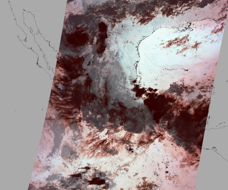 Nubosidad sobre el terreno:49% Nubosidad sobre México:56% Datos nulos en la escena:28% Datos nulos sobre México:16% |