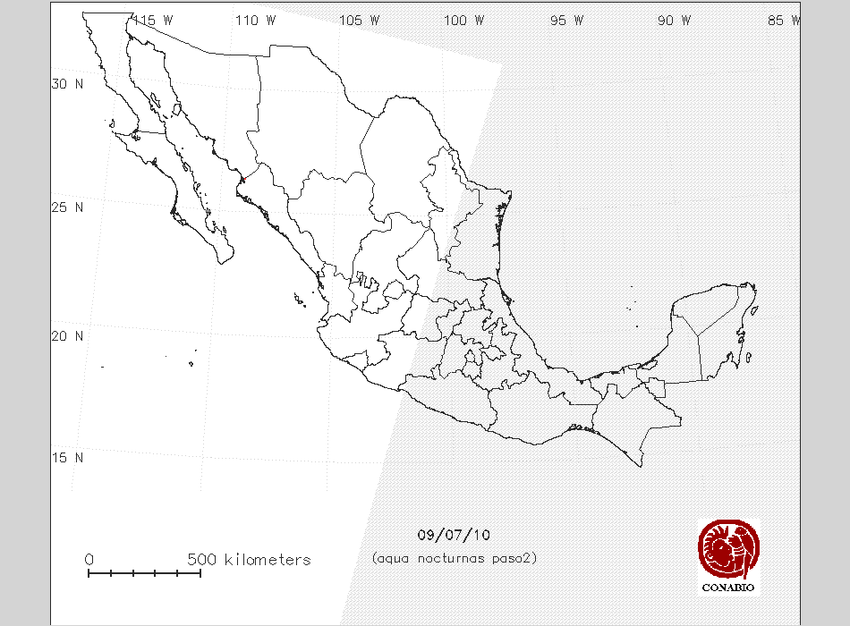 Se considera como punto de calor al elemento espacial mínimo de la imagen (pixel) que reporta una temperatura elevada. Para las imágenes diurnas la temperatura mínima considera es de 42 C y para las imágenes nocturnas es de 25 C. |