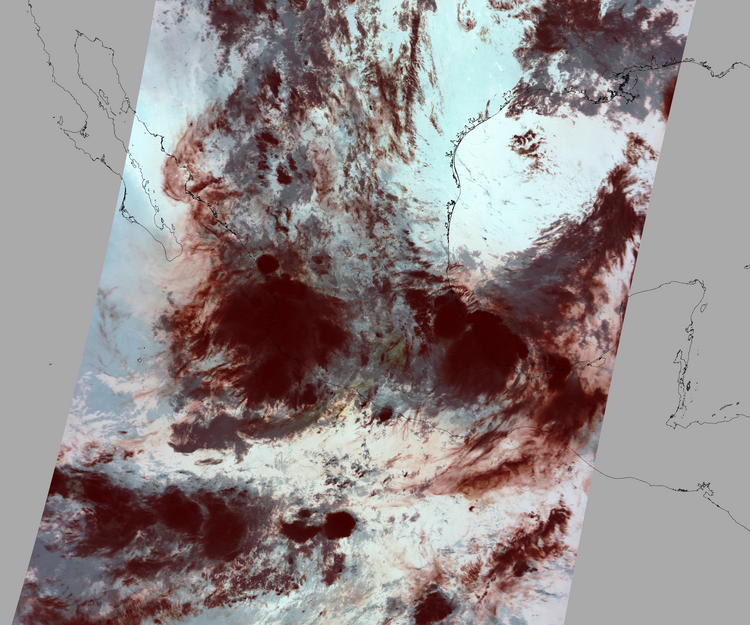 Nubosidad en el terreno:44% Nubosidad sobre México:50% Datos nulos en la escena:28% Datos nulos sobre México:14% |