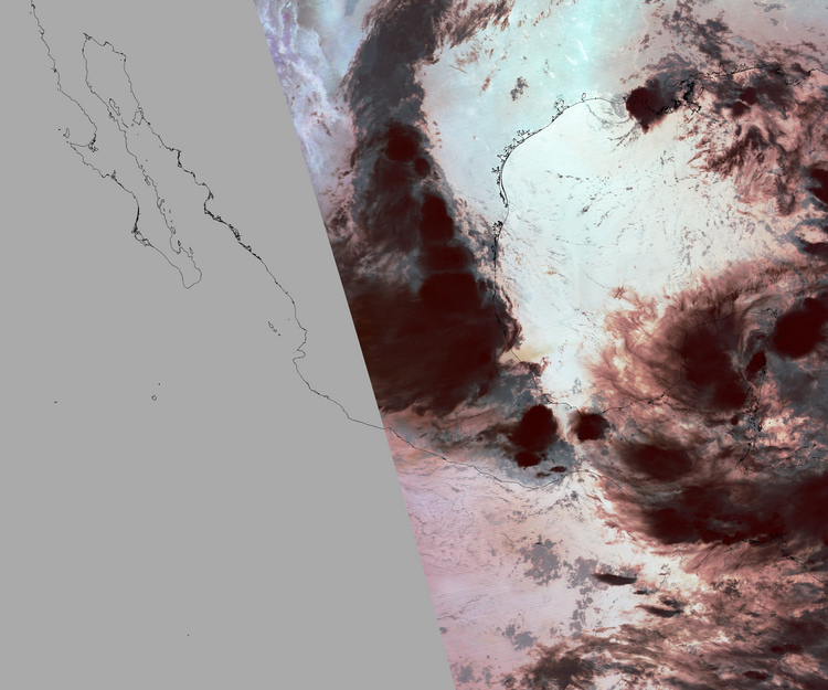 Nubosidad en el terreno:51% Nubosidad sobre México:70% Datos nulos en la escena:43% Datos nulos sobre México:37% |
