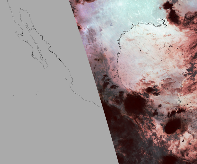 Nubosidad en el terreno:19% Nubosidad sobre México:30% Datos nulos en la escena:48% Datos nulos sobre México:50% |