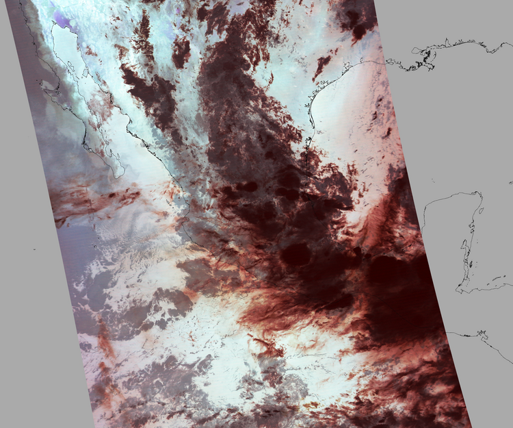 Nubosidad en el terreno:35% Nubosidad sobre México:42% Datos nulos en la escena:28% Datos nulos sobre México:6% |