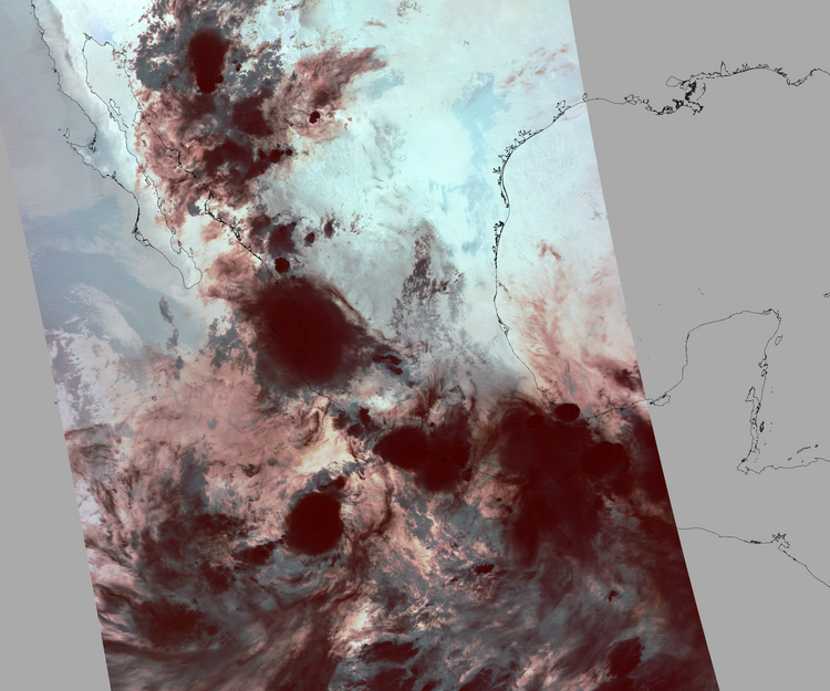 Nubosidad en el terreno:31% Nubosidad sobre México:40% Datos nulos en la escena:28% Datos nulos sobre México:8% |