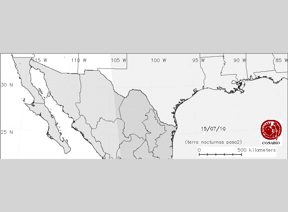 Se considera como punto de calor al elemento espacial mínimo de la imagen (pixel) que reporta una temperatura elevada. Para las imágenes diurnas la temperatura mínima considera es de 42 C y para las imágenes nocturnas es de 25 C. |
