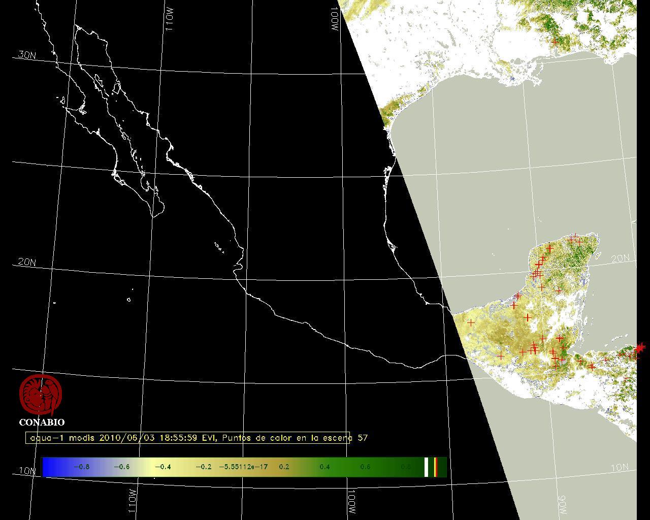 Se considera como punto de calor al elemento espacial mínimo de la imagen (pixel) que reporta una temperatura elevada. Para las imágenes diurnas la temperatura mínima considera es de 42 C y para las imágenes nocturnas es de 25 C. |