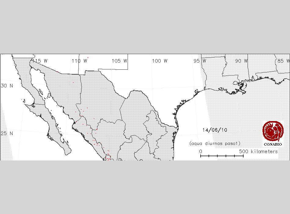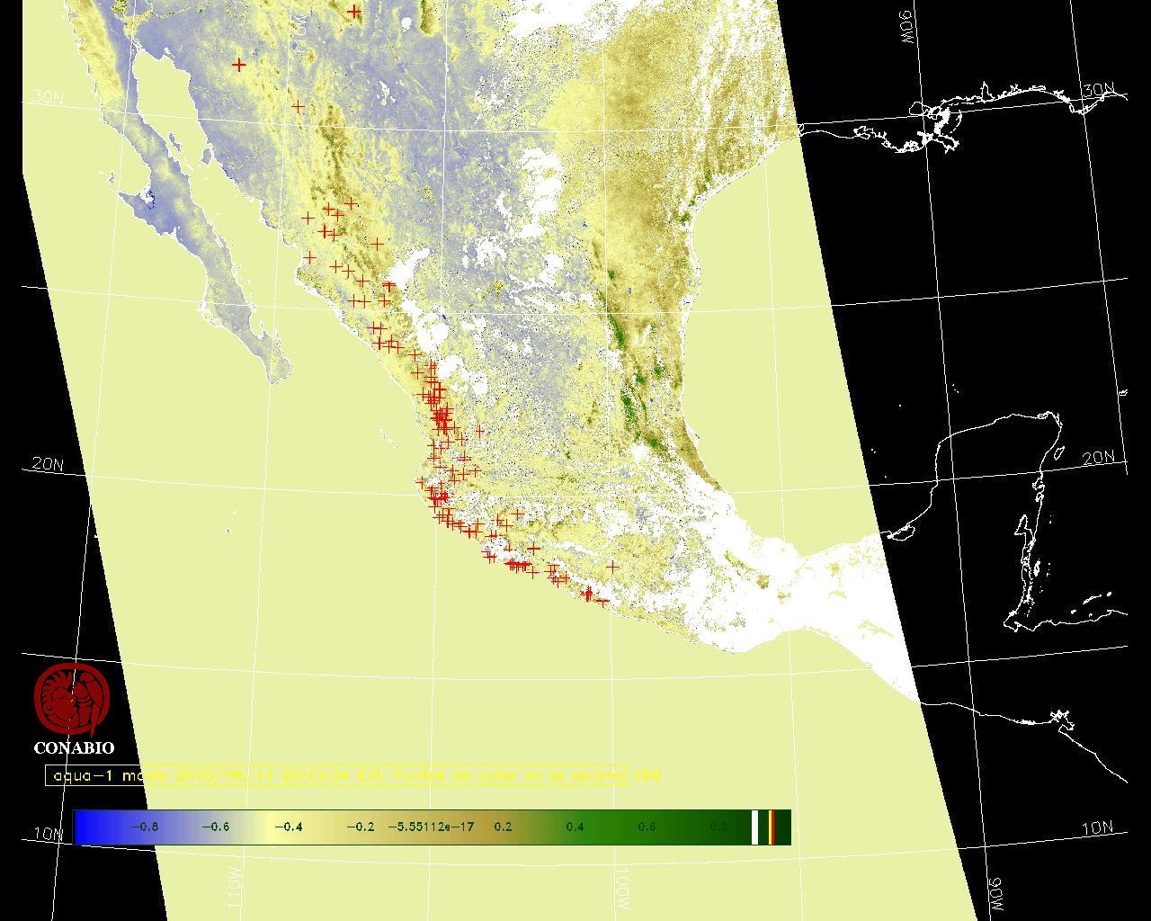 Se considera como punto de calor al elemento espacial mínimo de la imagen (pixel) que reporta una temperatura elevada. Para las imágenes diurnas la temperatura mínima considera es de 42 C y para las imágenes nocturnas es de 25 C. |