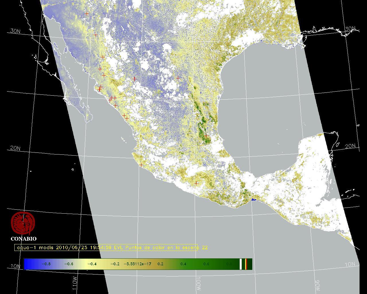 Se considera como punto de calor al elemento espacial mínimo de la imagen (pixel) que reporta una temperatura elevada. Para las imágenes diurnas la temperatura mínima considera es de 42 C y para las imágenes nocturnas es de 25 C. |