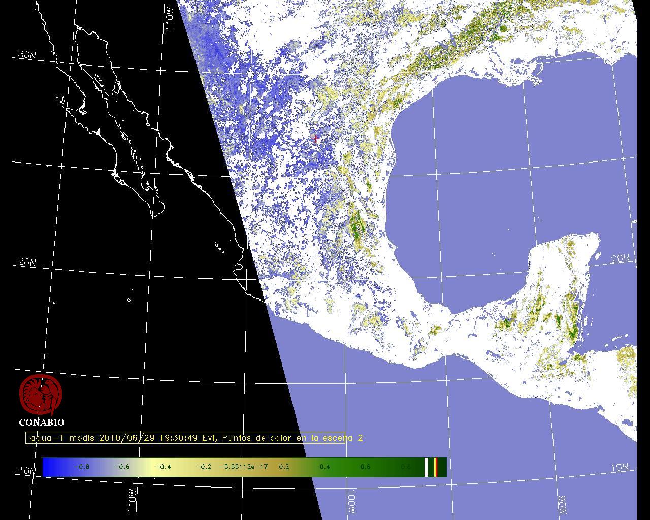 Se considera como punto de calor al elemento espacial mínimo de la imagen (pixel) que reporta una temperatura elevada. Para las imágenes diurnas la temperatura mínima considera es de 42 C y para las imágenes nocturnas es de 25 C. |