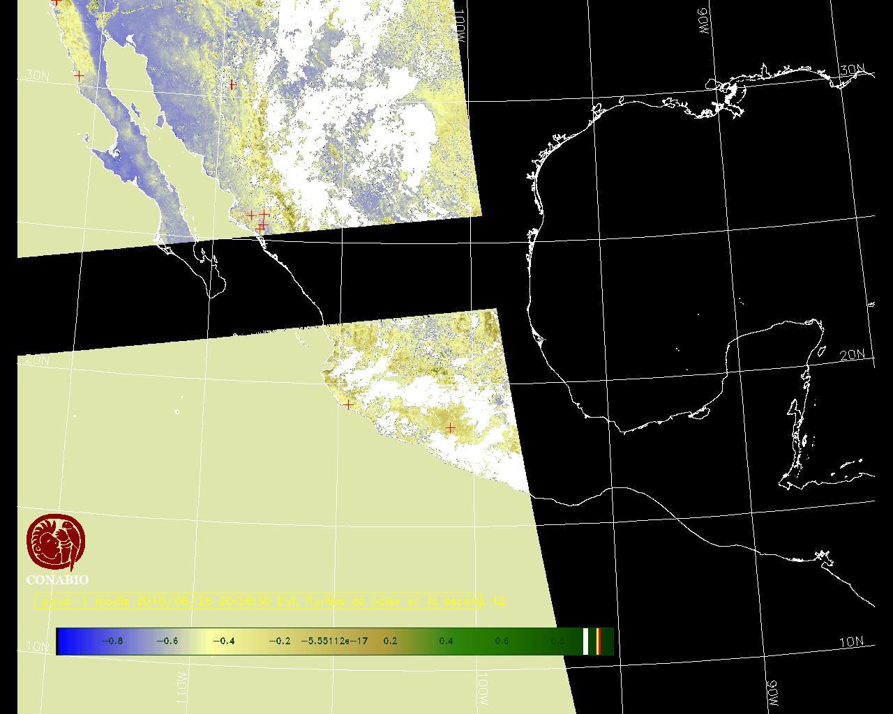 Los valores del índice van de -1 a 1, entre más cercano al valor 1 la vegetación presenta mayor vigor. Los índices de vegetación son utilizados para conocer el comportamiento de la vegetación tanto espacial como temporal. |