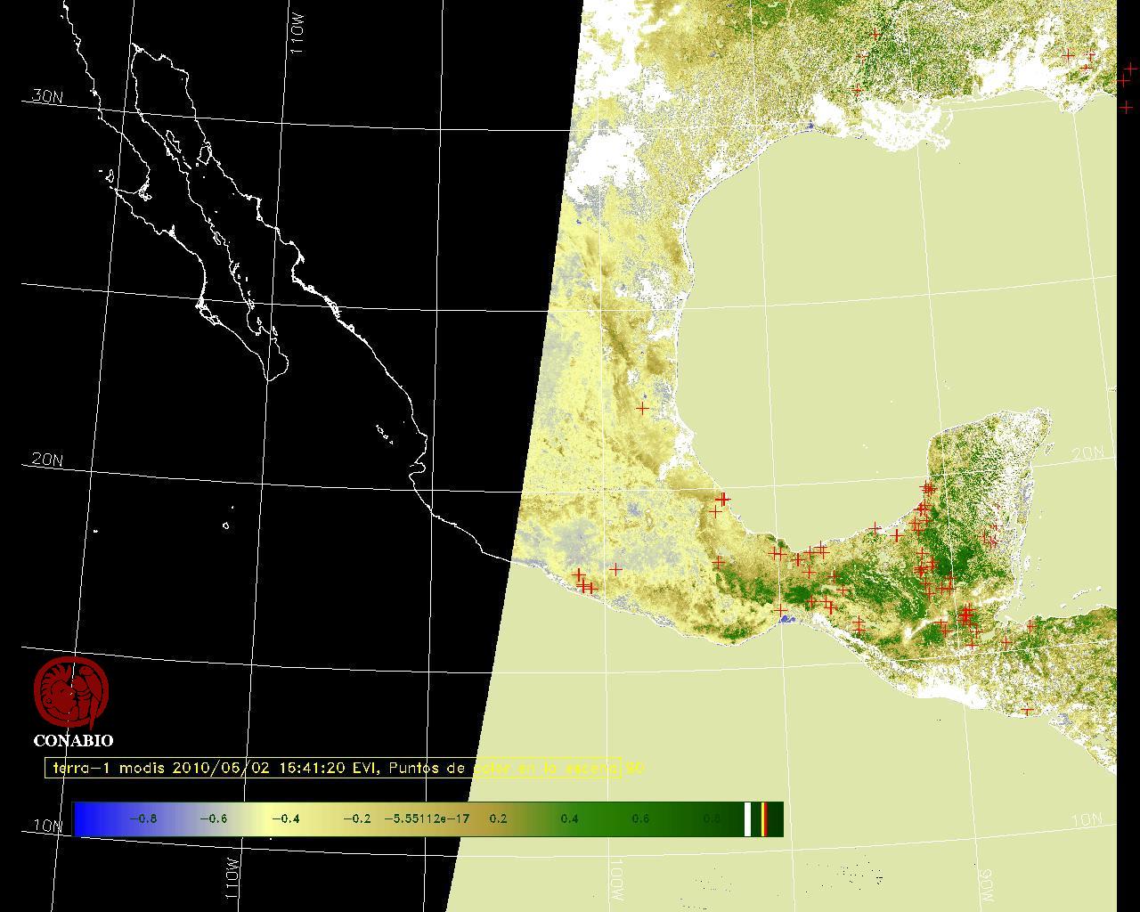 Se considera como punto de calor al elemento espacial mínimo de la imagen (pixel) que reporta una temperatura elevada. Para las imágenes diurnas la temperatura mínima considera es de 42 C y para las imágenes nocturnas es de 25 C. |