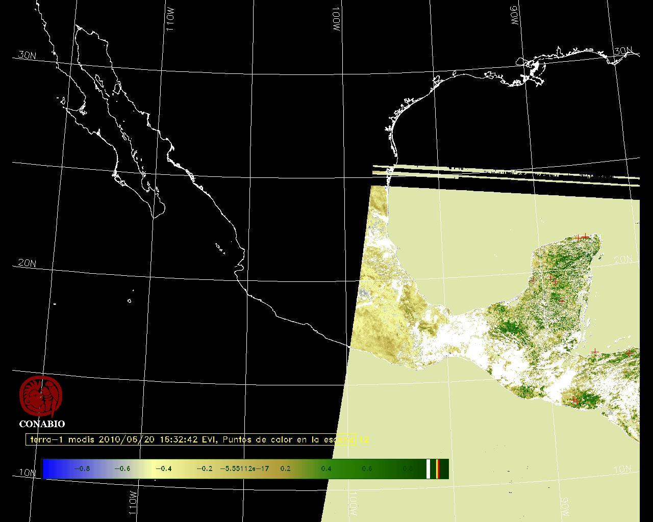 Se considera como punto de calor al elemento espacial mínimo de la imagen (pixel) que reporta una temperatura elevada. Para las imágenes diurnas la temperatura mínima considera es de 42 C y para las imágenes nocturnas es de 25 C. |