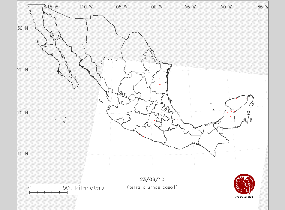 | 12 | 1 | -87 35 12 | 21 13 16 | Pastizal cultivado | Lázaro Cárdenas,Quintana Roo | NO AFECTA | 0 ° | ND | |