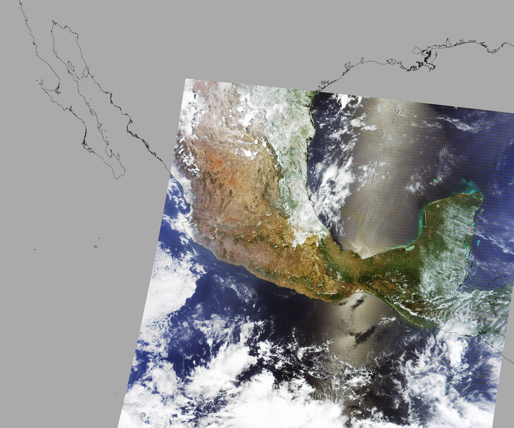 Nubosidad en el terreno:12% Nubosidad sobre México:11% Datos nulos en la escena:46% Datos nulos sobre México:31% |