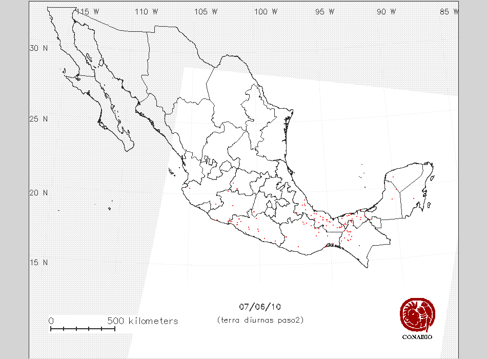 | 103 | 2 | -94 4 3 | 17 30 41 | Pastizal cultivado | Las Choapas,Veracruz | NO AFECTA | 0 ° | NA | |
