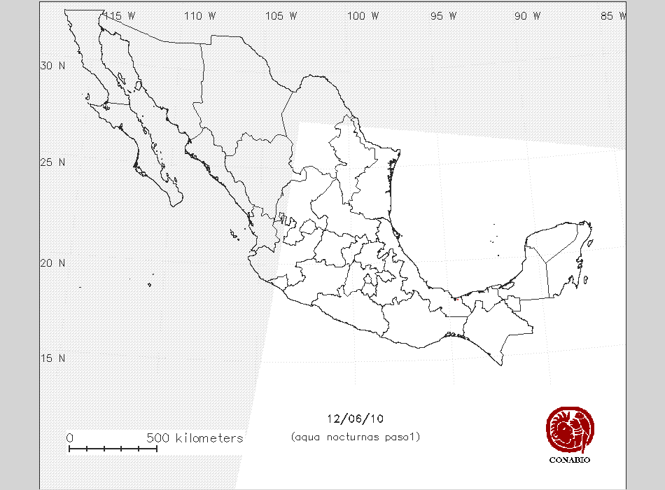 Se considera como punto de calor al elemento espacial mínimo de la imagen (pixel) que reporta una temperatura elevada. Para las imágenes diurnas la temperatura mínima considera es de 42 C y para las imágenes nocturnas es de 25 C. |