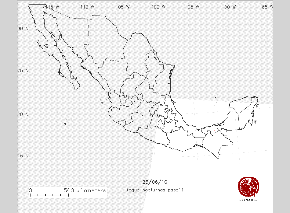 Se considera como punto de calor al elemento espacial mínimo de la imagen (pixel) que reporta una temperatura elevada. Para las imágenes diurnas la temperatura mínima considera es de 42 C y para las imágenes nocturnas es de 25 C. |