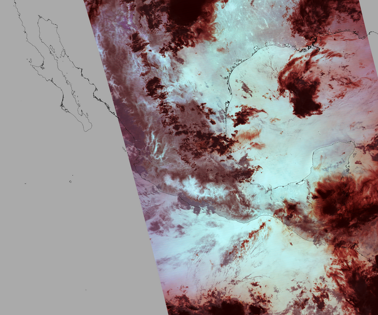 Nubosidad en el terreno:14% Nubosidad sobre México:5% Datos nulos en la escena:34% Datos nulos sobre México:17% |