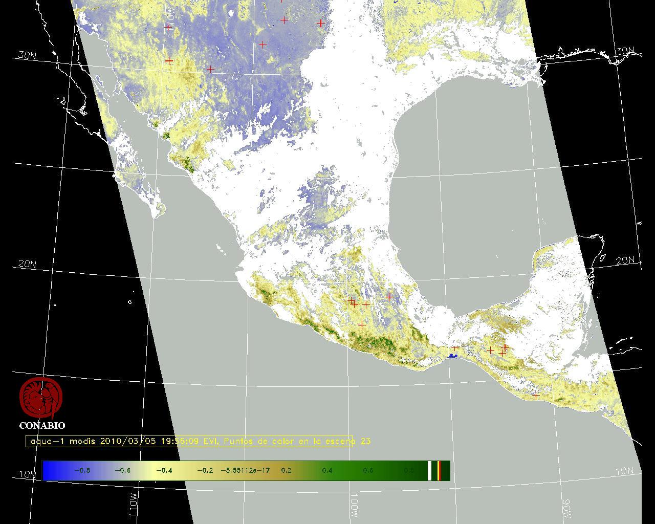 Se considera como punto de calor al elemento espacial mínimo de la imagen (pixel) que reporta una temperatura elevada. Para las imágenes diurnas la temperatura mínima considera es de 42 C y para las imágenes nocturnas es de 25 C. |
