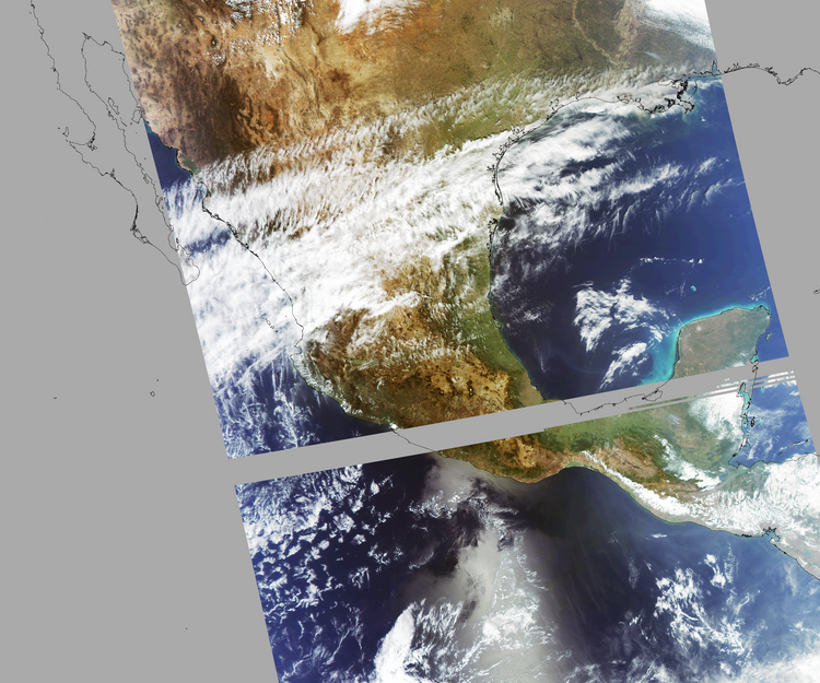 Nubosidad en el terreno:20% Nubosidad sobre México:23% Datos nulos en la escena:29% Datos nulos sobre México:8% |