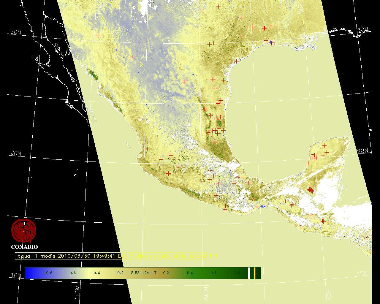 Los valores del índice van de -1 a 1, entre más cercano al valor 1 la vegetación presenta mayor vigor. Los índices de vegetación son utilizados para conocer el comportamiento de la vegetación tanto espacial como temporal. |
