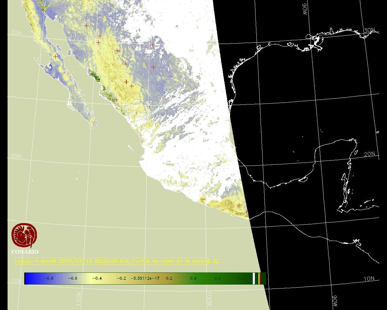 Se considera como punto de calor al elemento espacial mínimo de la imagen (pixel) que reporta una temperatura elevada. Para las imágenes diurnas la temperatura mínima considera es de 42 C y para las imágenes nocturnas es de 25 C. |