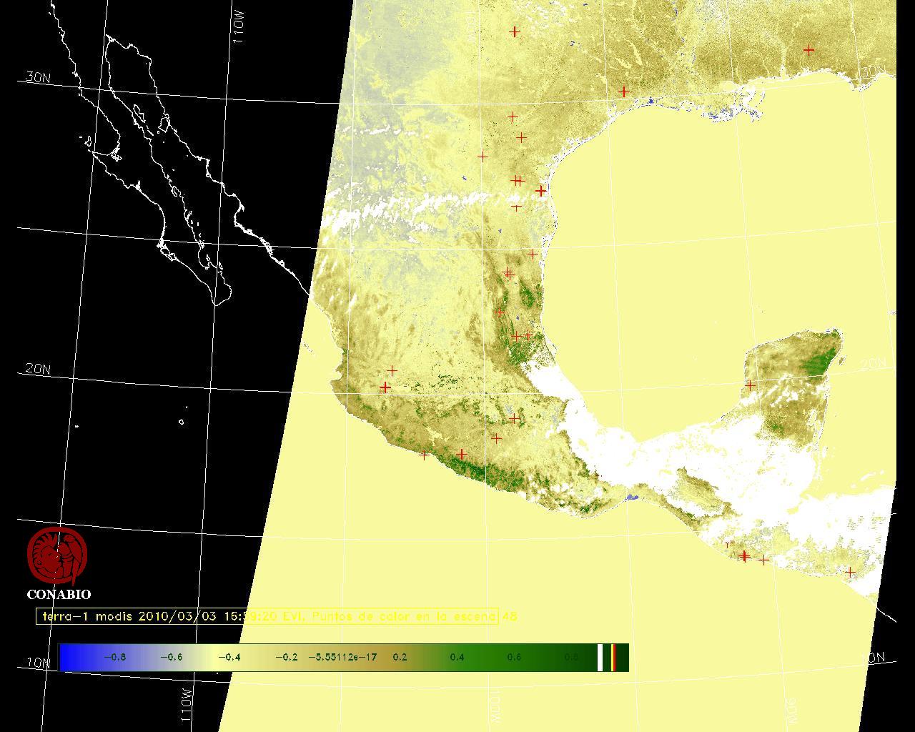 Nubosidad en el terreno:15% Nubosidad sobre México:16% Datos nulos en la escena:32% Datos nulos sobre México:28% |