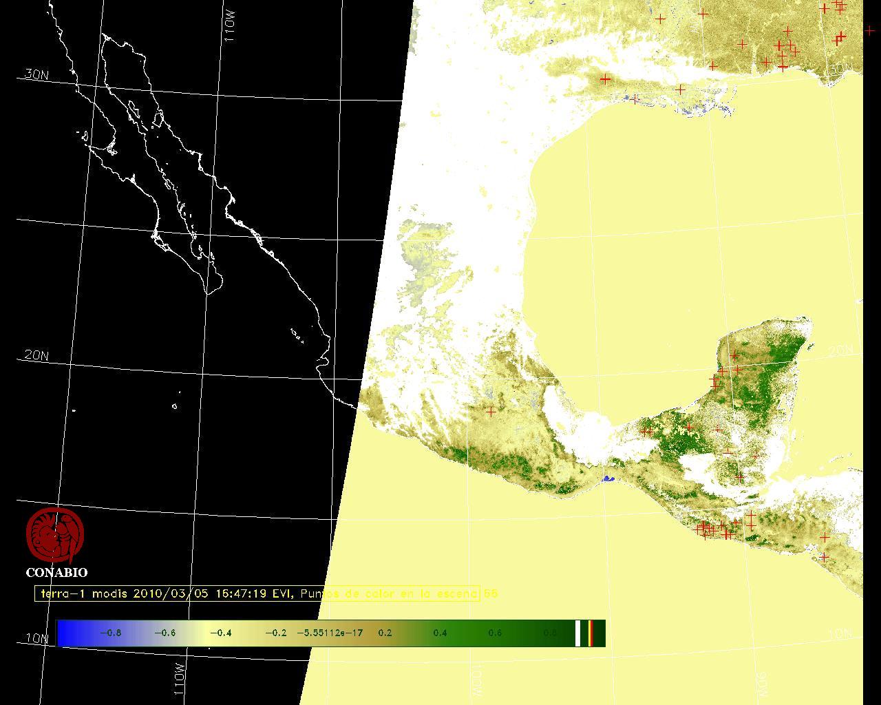 Se considera como punto de calor al elemento espacial mínimo de la imagen (pixel) que reporta una temperatura elevada. Para las imágenes diurnas la temperatura mínima considera es de 42 C y para las imágenes nocturnas es de 25 C. |