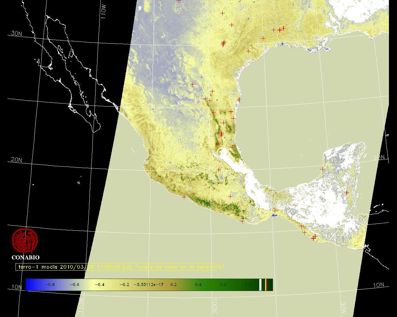 Se considera como punto de calor al elemento espacial mínimo de la imagen (pixel) que reporta una temperatura elevada. Para las imágenes diurnas la temperatura mínima considera es de 42 C y para las imágenes nocturnas es de 25 C. |