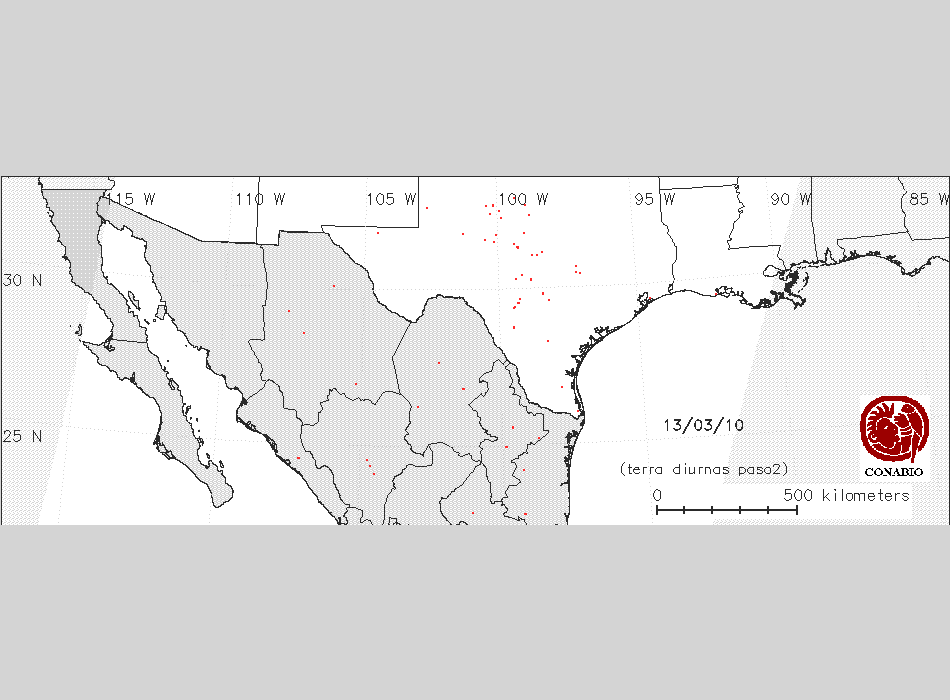 Se considera como punto de calor al elemento espacial mínimo de la imagen (pixel) que reporta una temperatura elevada. Para las imágenes diurnas la temperatura mínima considera es de 42 C y para las imágenes nocturnas es de 25 C. |