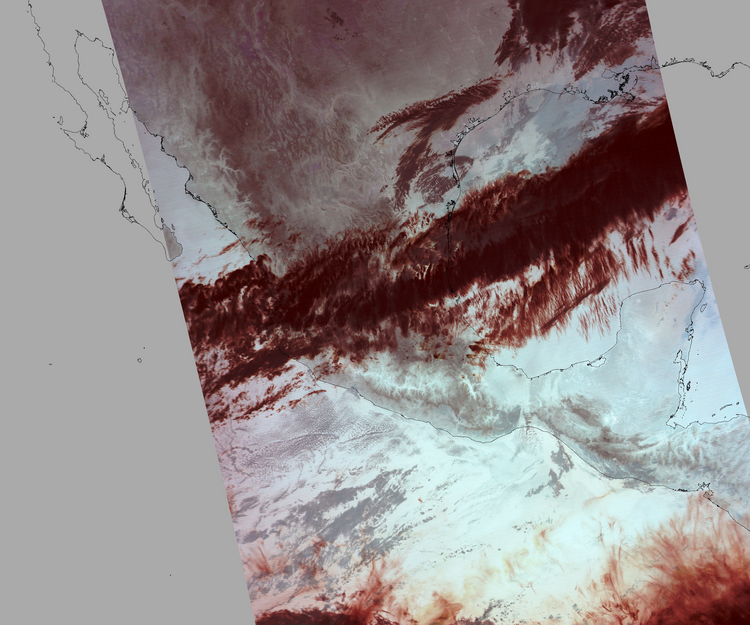 Nubosidad en el terreno:16% Nubosidad sobre México:18% Datos nulos en la escena:29% Datos nulos sobre México:8% |