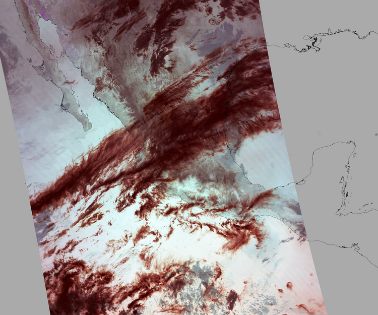 Nubosidad en el terreno:28% Nubosidad sobre México:27% Datos nulos en la escena:28% Datos nulos sobre México:8% |