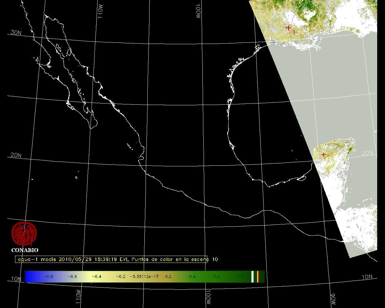 Se considera como punto de calor al elemento espacial mínimo de la imagen (pixel) que reporta una temperatura elevada. Para las imágenes diurnas la temperatura mínima considera es de 42 C y para las imágenes nocturnas es de 25 C. |