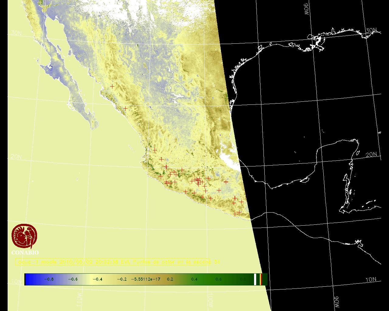 Se considera como punto de calor al elemento espacial mínimo de la imagen (pixel) que reporta una temperatura elevada. Para las imágenes diurnas la temperatura mínima considera es de 42 C y para las imágenes nocturnas es de 25 C. |
