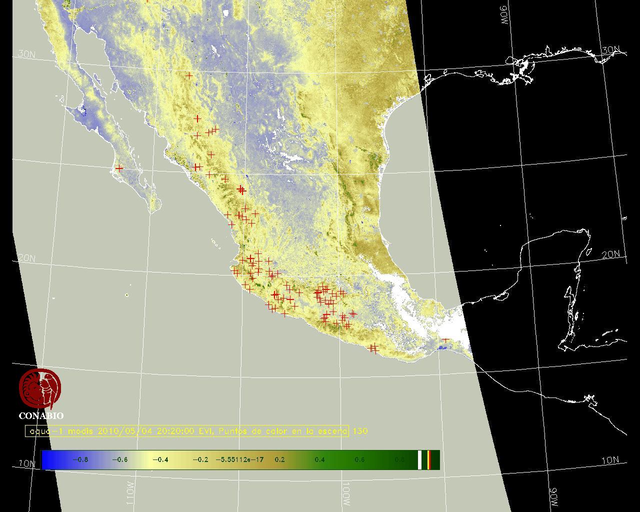 Se considera como punto de calor al elemento espacial mínimo de la imagen (pixel) que reporta una temperatura elevada. Para las imágenes diurnas la temperatura mínima considera es de 42 C y para las imágenes nocturnas es de 25 C. |