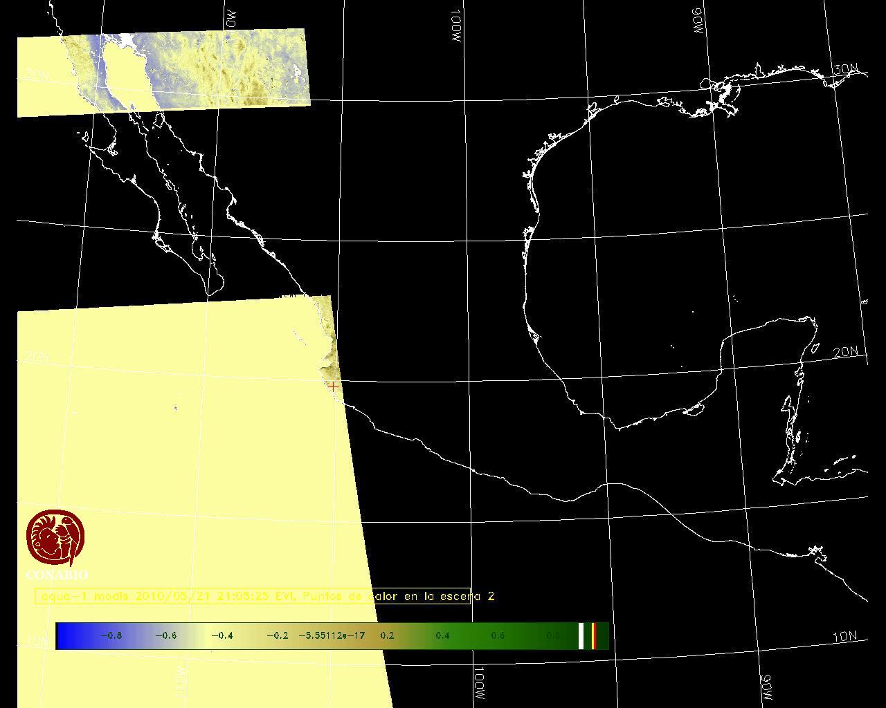 Se considera como punto de calor al elemento espacial mínimo de la imagen (pixel) que reporta una temperatura elevada. Para las imágenes diurnas la temperatura mínima considera es de 42 C y para las imágenes nocturnas es de 25 C. |