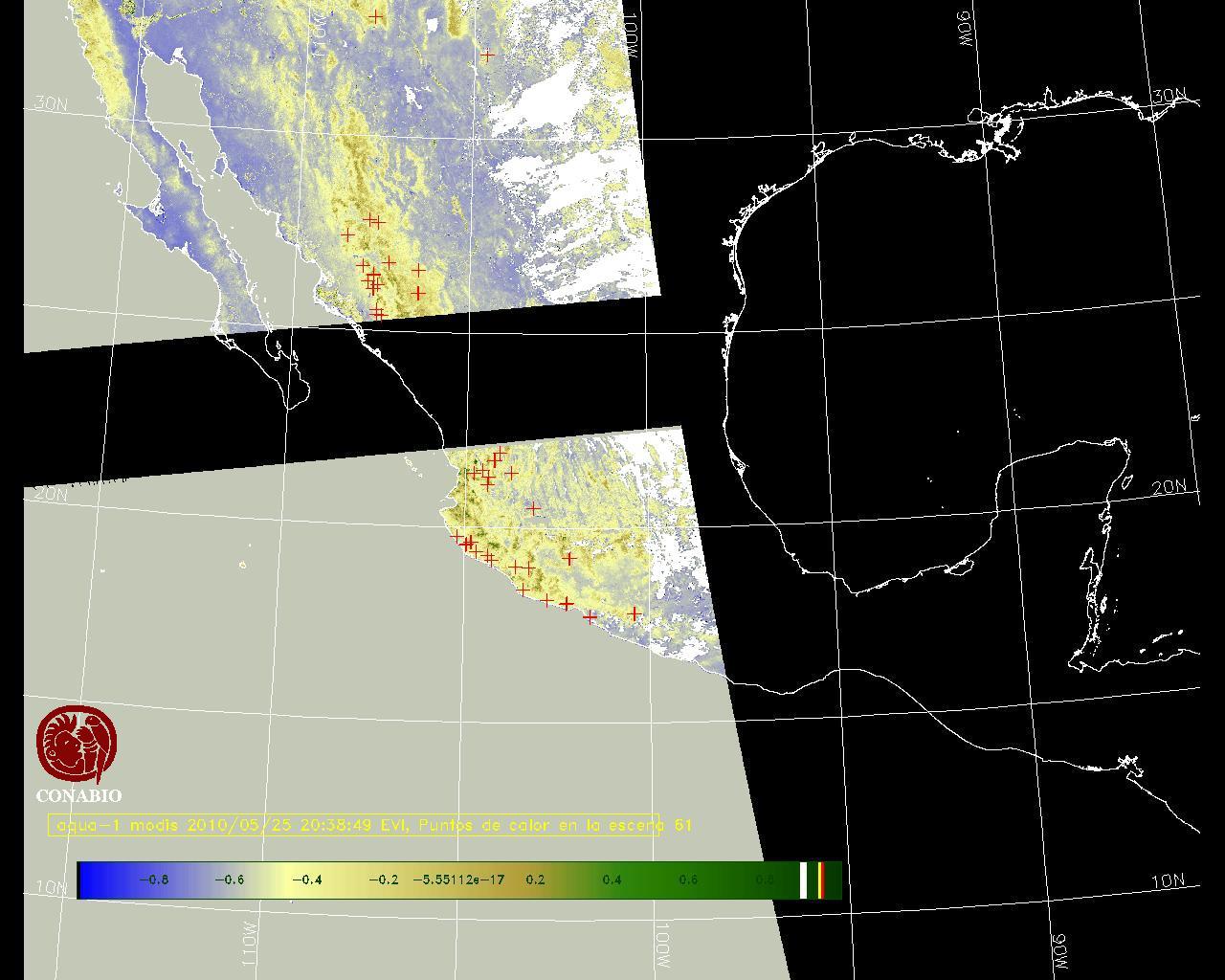 Se considera como punto de calor al elemento espacial mínimo de la imagen (pixel) que reporta una temperatura elevada. Para las imágenes diurnas la temperatura mínima considera es de 42 C y para las imágenes nocturnas es de 25 C. |