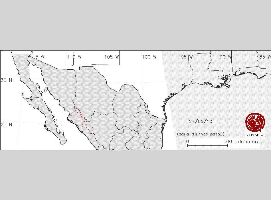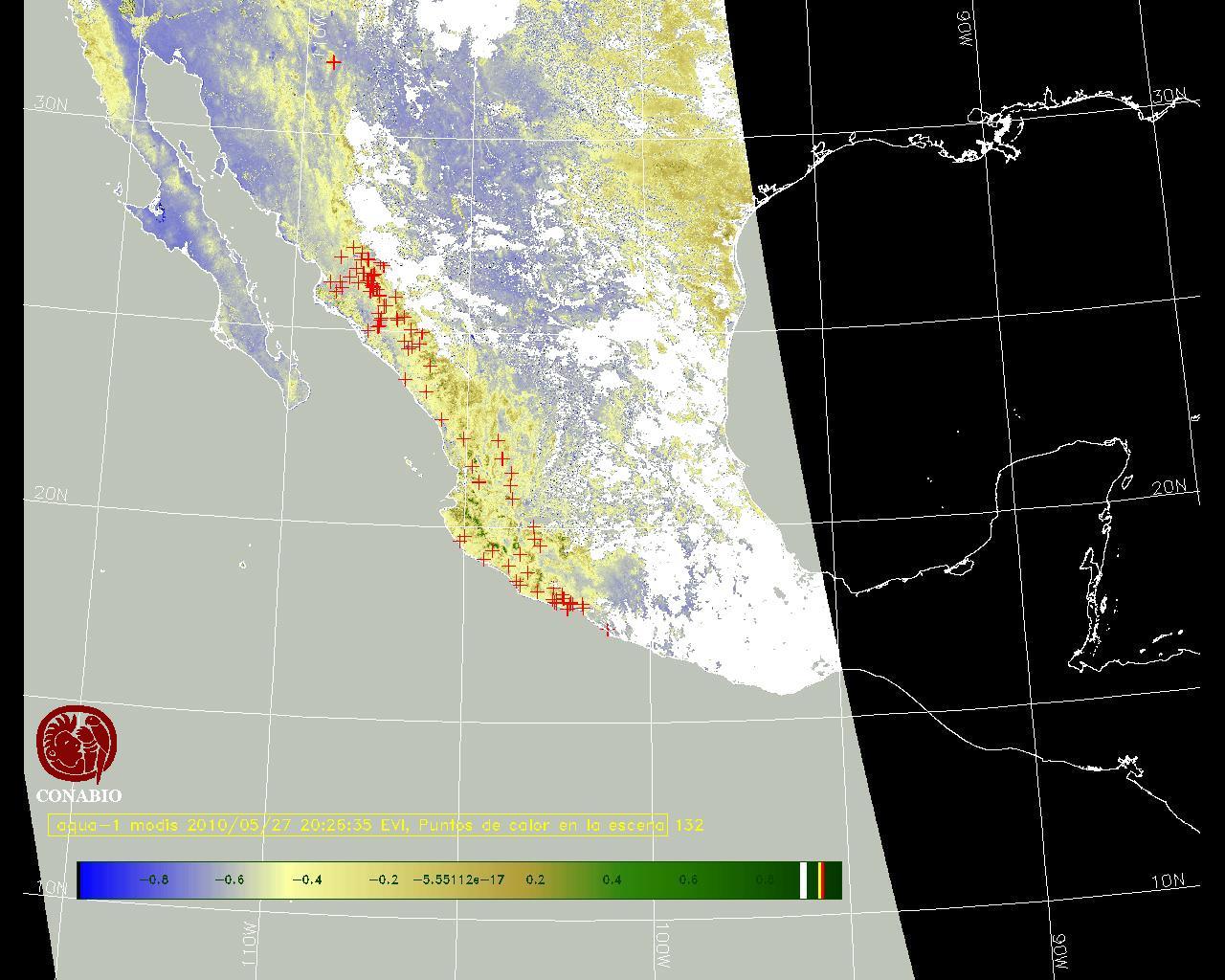 Se considera como punto de calor al elemento espacial mínimo de la imagen (pixel) que reporta una temperatura elevada. Para las imágenes diurnas la temperatura mínima considera es de 42 C y para las imágenes nocturnas es de 25 C. |