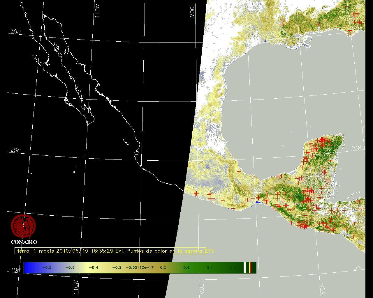 Se considera como punto de calor al elemento espacial mínimo de la imagen (pixel) que reporta una temperatura elevada. Para las imágenes diurnas la temperatura mínima considera es de 42 C y para las imágenes nocturnas es de 25 C. |