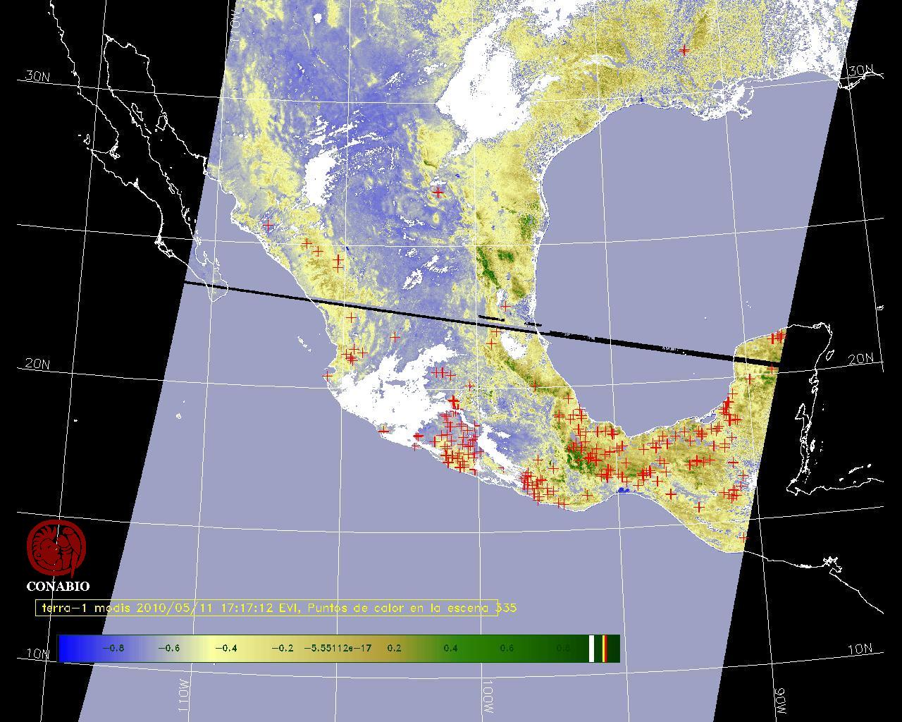 Nubosidad en el terreno:13% Nubosidad sobre México:9% Datos nulos en la escena:28% Datos nulos sobre México:15% |